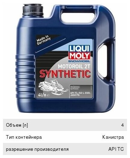Моторное масло LIQUI MOLY для снегоходов Snowmobil Motoroil 2T Synthetic TC FC L-EGD 4 л