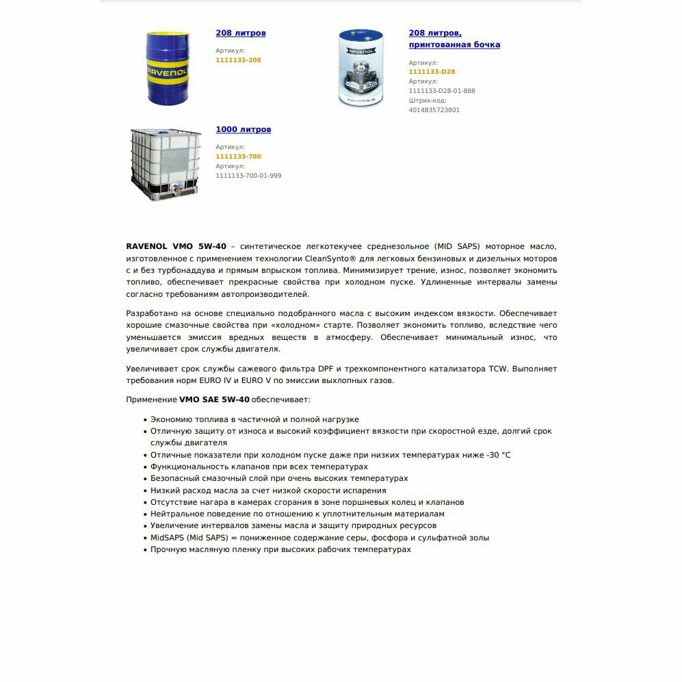 Ниже Вы можете прочитать отзывы на Моторное масло RAVENOL VMO SAE 5W-40 (4л) new, ознакомится с подробными характеристиками, посмотреть интересные обзоры и фотографии на Моторное масло RAVENOL VMO SAE 5W-40 (4л) new.