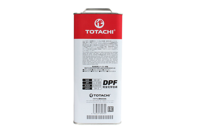TOTACHI 11706 5W-40 6L 4562374690752 PREMIUM DIESEL FULLY SYNTHETIC CJ-4/SM старый номер