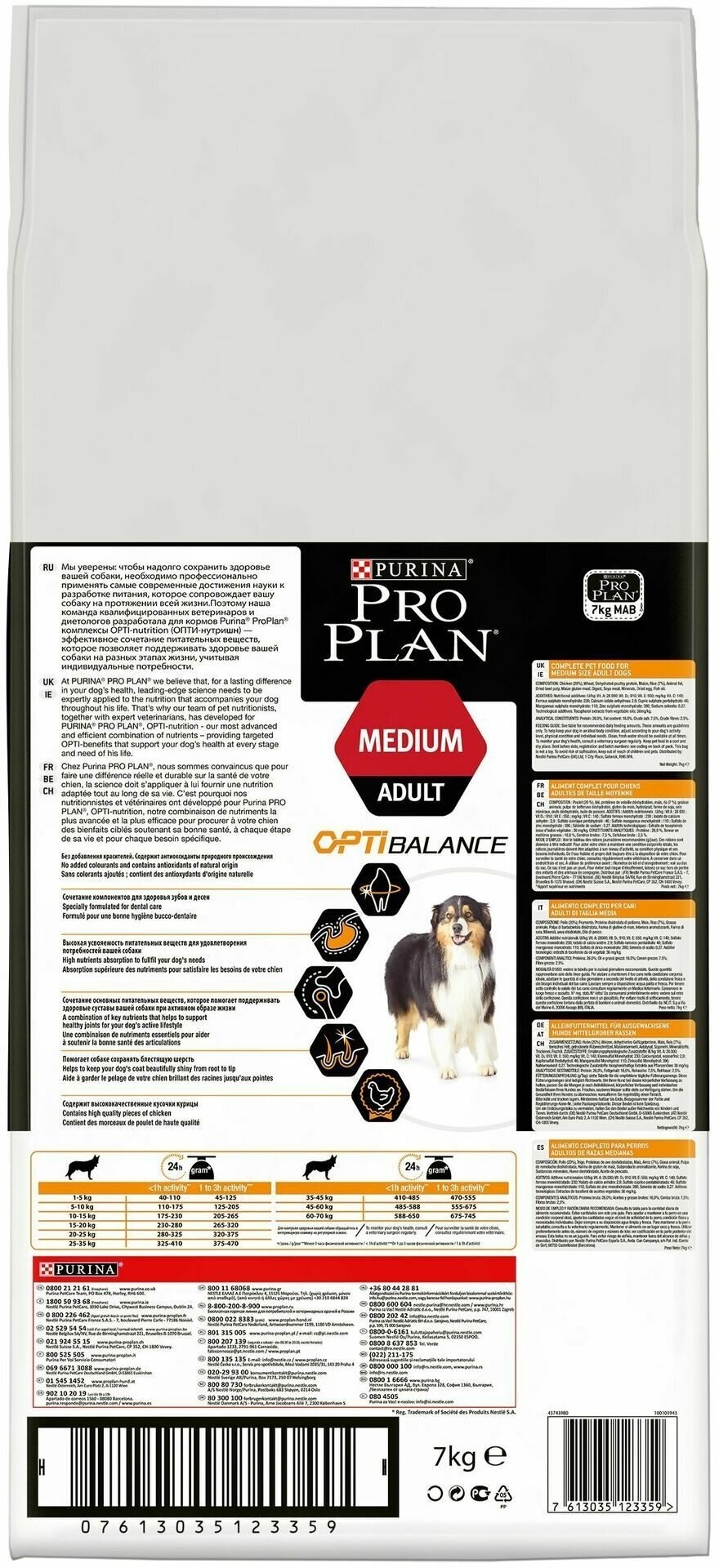 PRO PLAN ADULT DOG OPTIBALANCE MEDIUM для взрослых собак средних пород с курицей (7 кг)