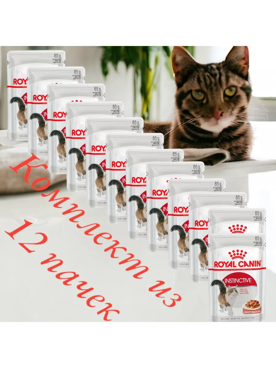 Влажный корм для кошек Royal Canin Instinctive, профилактика избыточного веса, профилактика МКБ 12 шт. х 85 г (кусочки в соусе)
