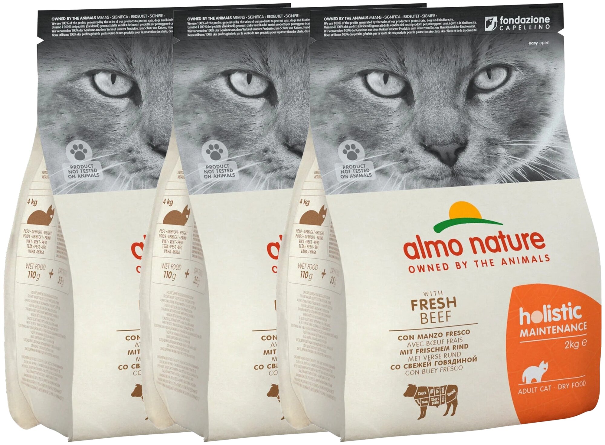 Купить Almo Nature Для взрослых кошек с Говядиной и коричневым рисом (Holistic - Adult Cat Adult Beef and Rice) 2 кг х 3 шт.