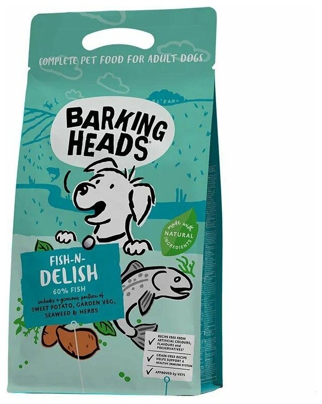 Barking Heads Беззерновой корм для собак с лососем, форелью и бататом "Рыбка-вкусняшка" FISH N DELISH 12кг
