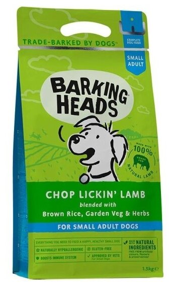 Barking Heads Для собак малых пород, с ягненком и рисом "Мечты о ягненке", CHOP LICKIN' LAMB 1,5кг