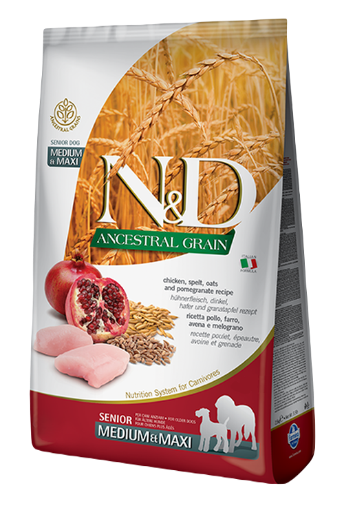 Фармина N&D ANCESTRAL GRAIN LINE для собак CHICKEN, SPELT, OATS&POMEGRANTE Senior medium&maxi,12 кг