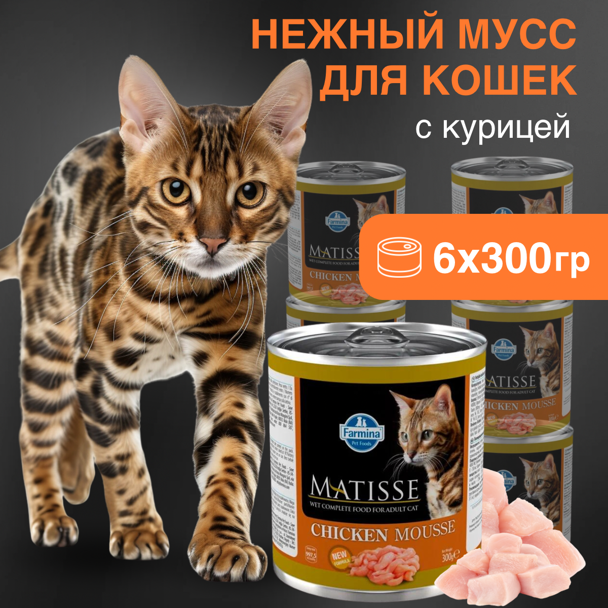 Влажный корм для кошек Farmina Matisse Chicken Mousse,курица,упаковка 6 шт х 300 гр