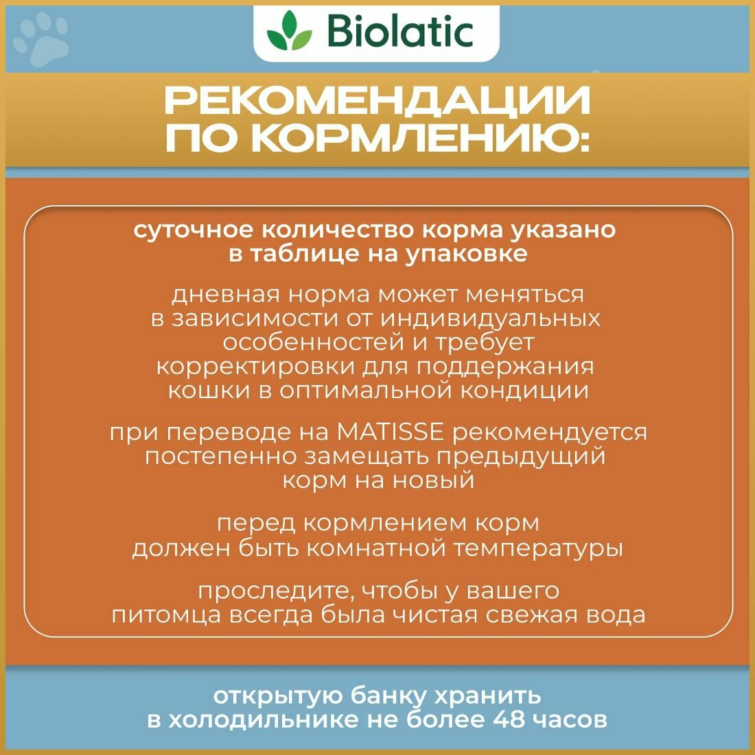 | Отзыв: | Благодаря Матисс наш котик избавился от проблем с ЖКТ , набрал вес и чувствует себя отлично. Перепробовали много холистик кормов, последние 2 года остановились на матиссе. |