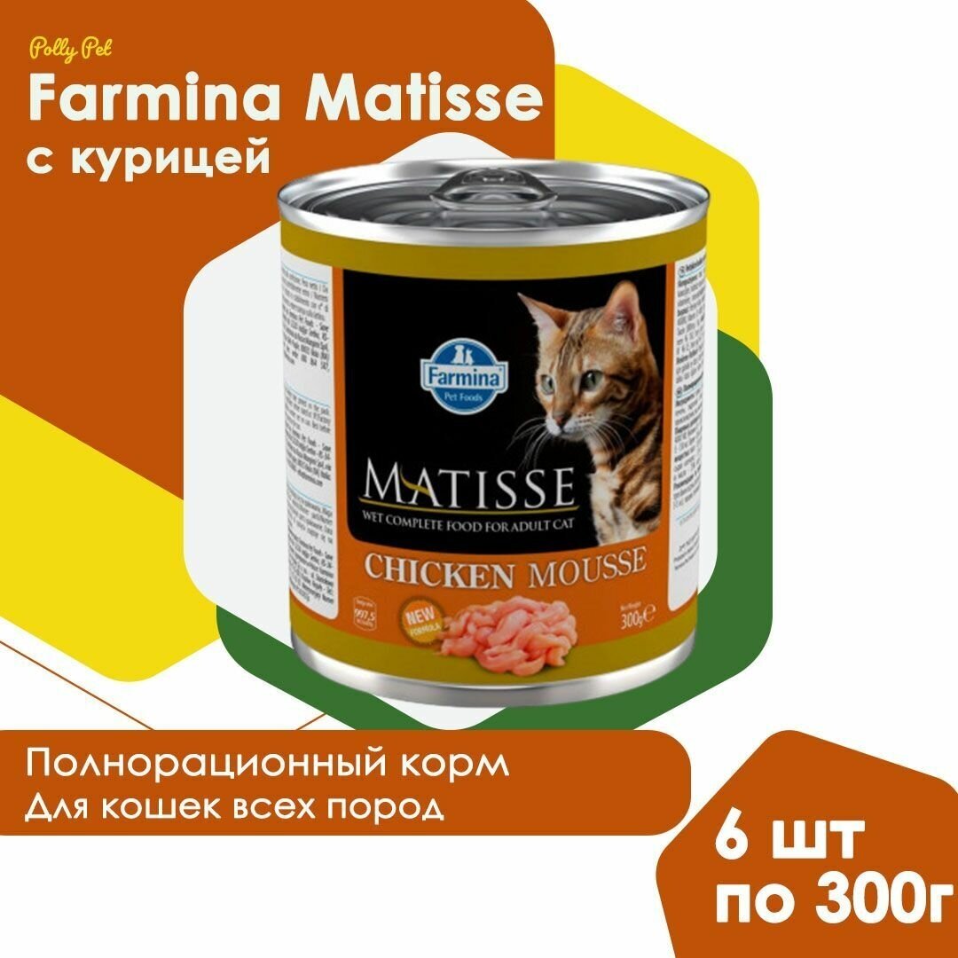 Купить Влажный корм для кошек Farmina Matisse, с курицей 6 шт. х 300 г (мусс)