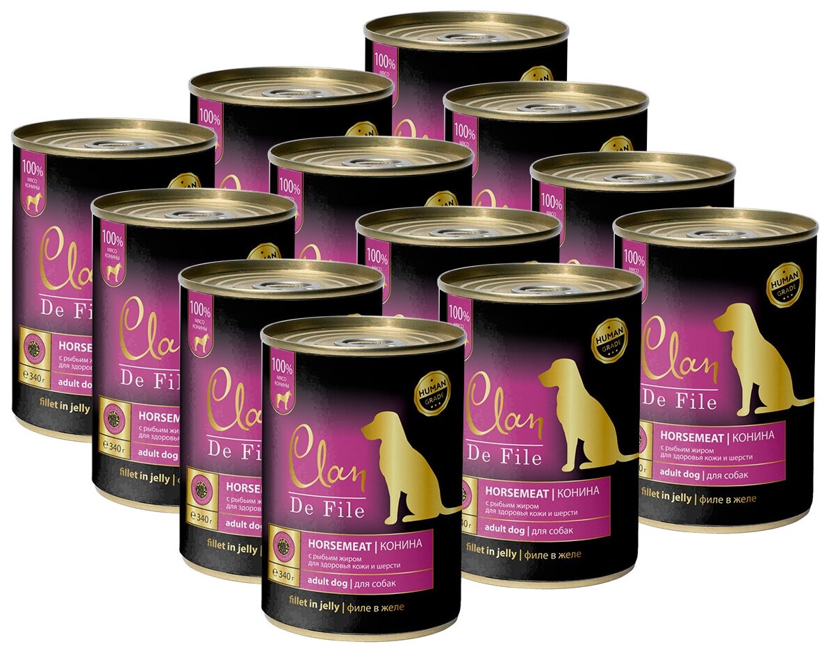 CLAN DE FILE монобелковые для взрослых собак с кониной и рыбьим жиром (340 гр х 12 шт)