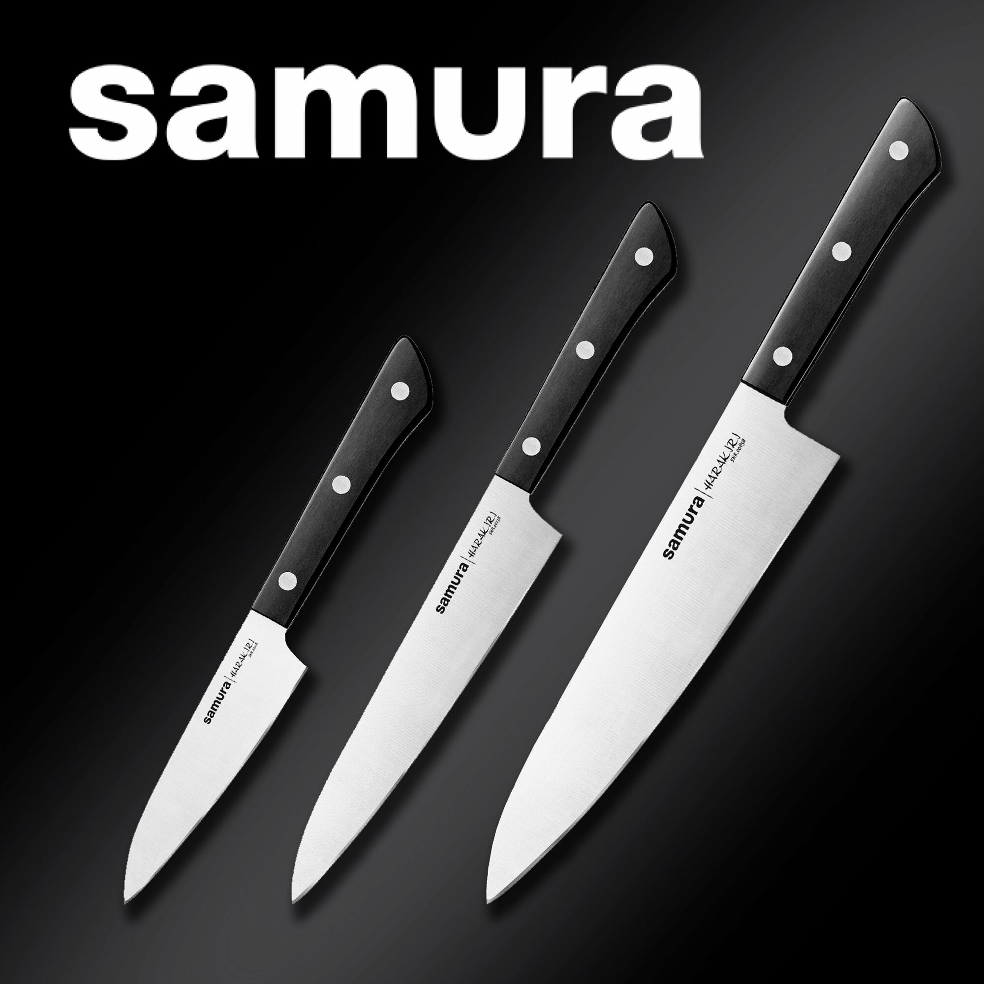 Набор кухонных ножей Samura Harakiri SHR-0220B/K, корроз.-стойкая сталь, ABS пластик, 3 штуки