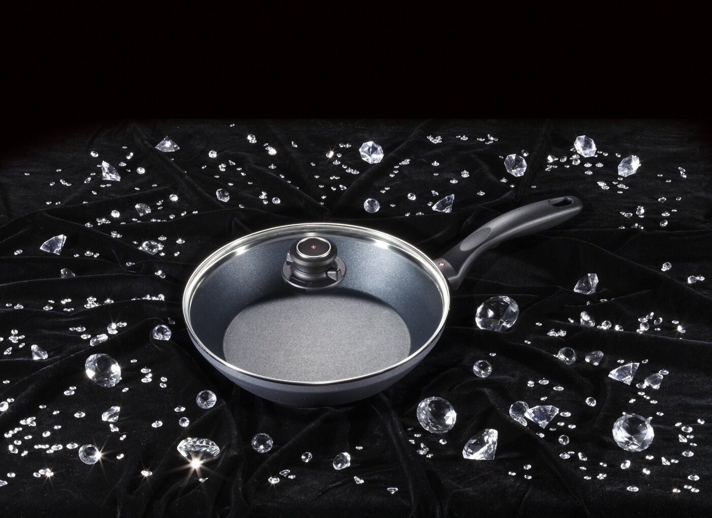 Алюминиевая высокая сковорода с алмазным покрытием и стеклянной крышкой, 24 см, Черная Swiss Diamond XD Classic+ Induction