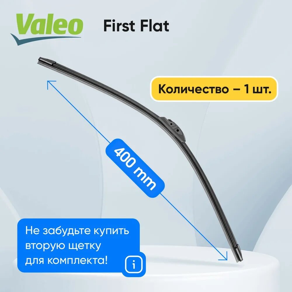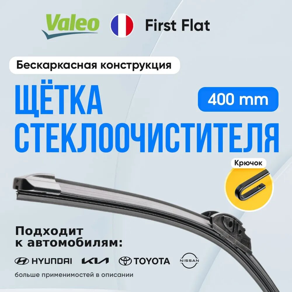 Щетка стеклоочистителя First Flatblade Aftermarket 400 мм VFAM40 (Крючок 9x3/Крючок) 575792 VALEO