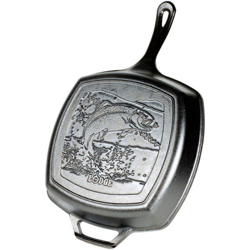 Lodge Чугунная сковорода-гриль квадратная Wildlife Series Fish 26 см (L8SGPWLFI) интересное:
