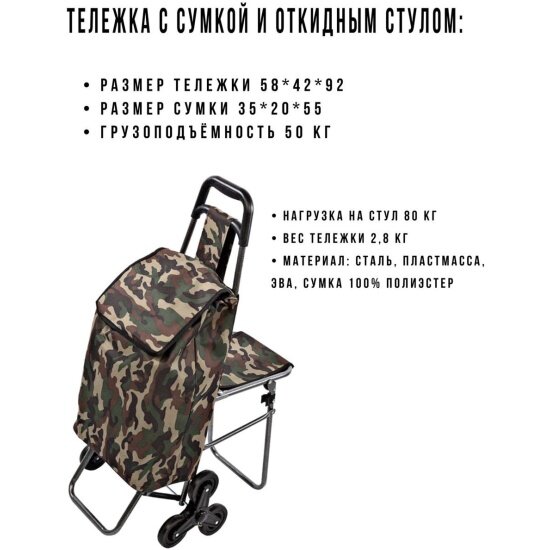 Сумка-тележка Рыжий кот С302 (50 кг) со стулом Хаки