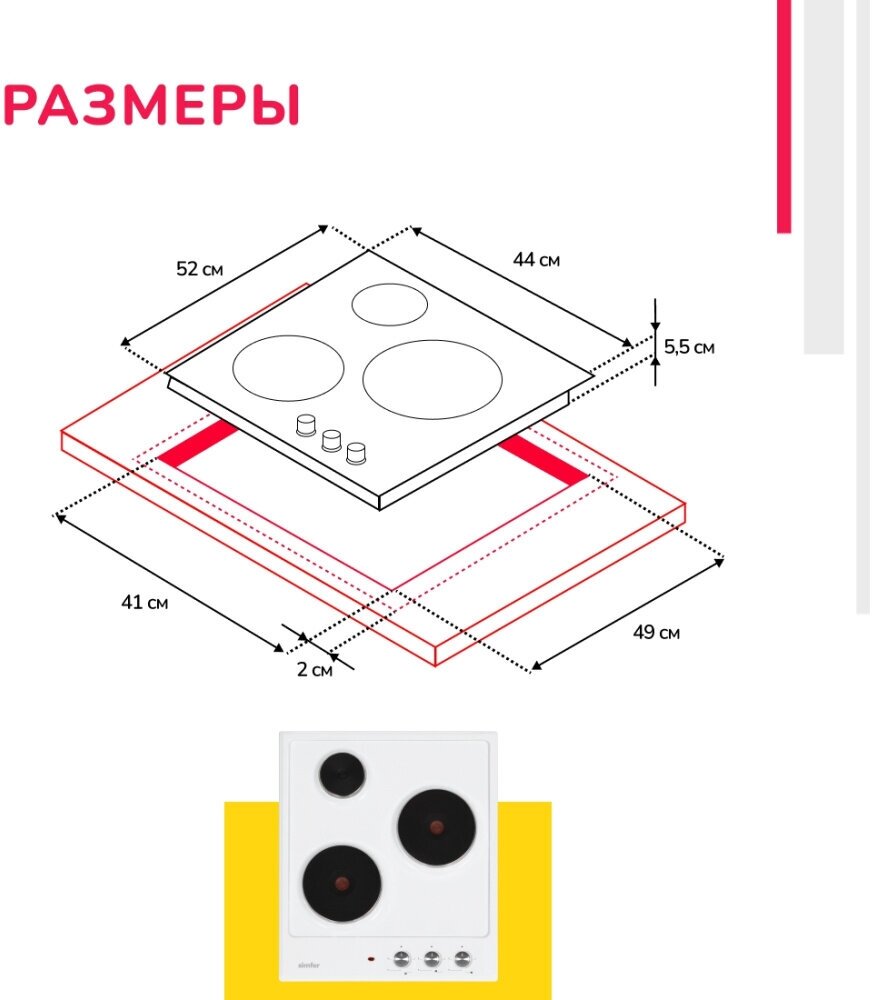 Электрическая варочная панель Simfer 45см / 3 конфорки / 2,5 кВт мощность / эмалированная сталь / 5 лет гарантии / черный