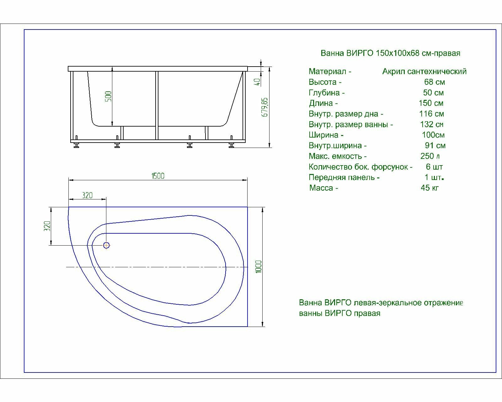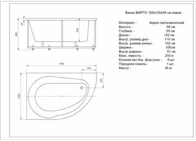 Ванна акриловая АКВАТЕК Вирго 150х100 VIR150-0000038