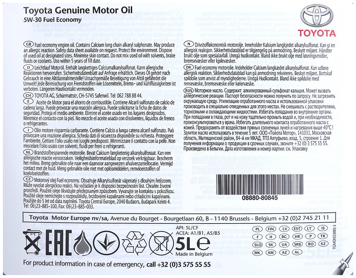 Toyota 08880-80845 Масло Моторное Синтетическое Engine Oil 5w-30, 5л TOYOTA арт. TOYOTA0888080845 интересное: