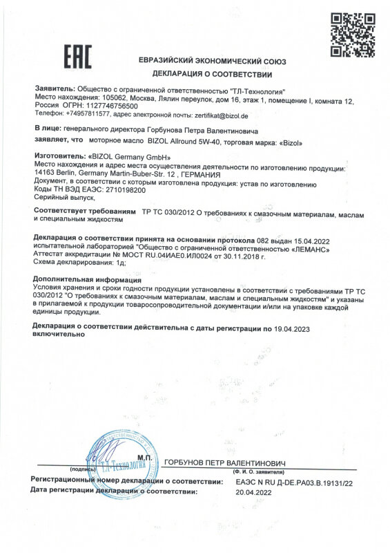 | Допуски OEM | VW 502.00/505.00 / PSA B71 2296 / BMW Longlife-01 / Renault RN 0710 / PORSCHE A40 / MB 229.3 / Renault RN 0700 / GM-LL-A-025 / GM-LL-B-025 |
