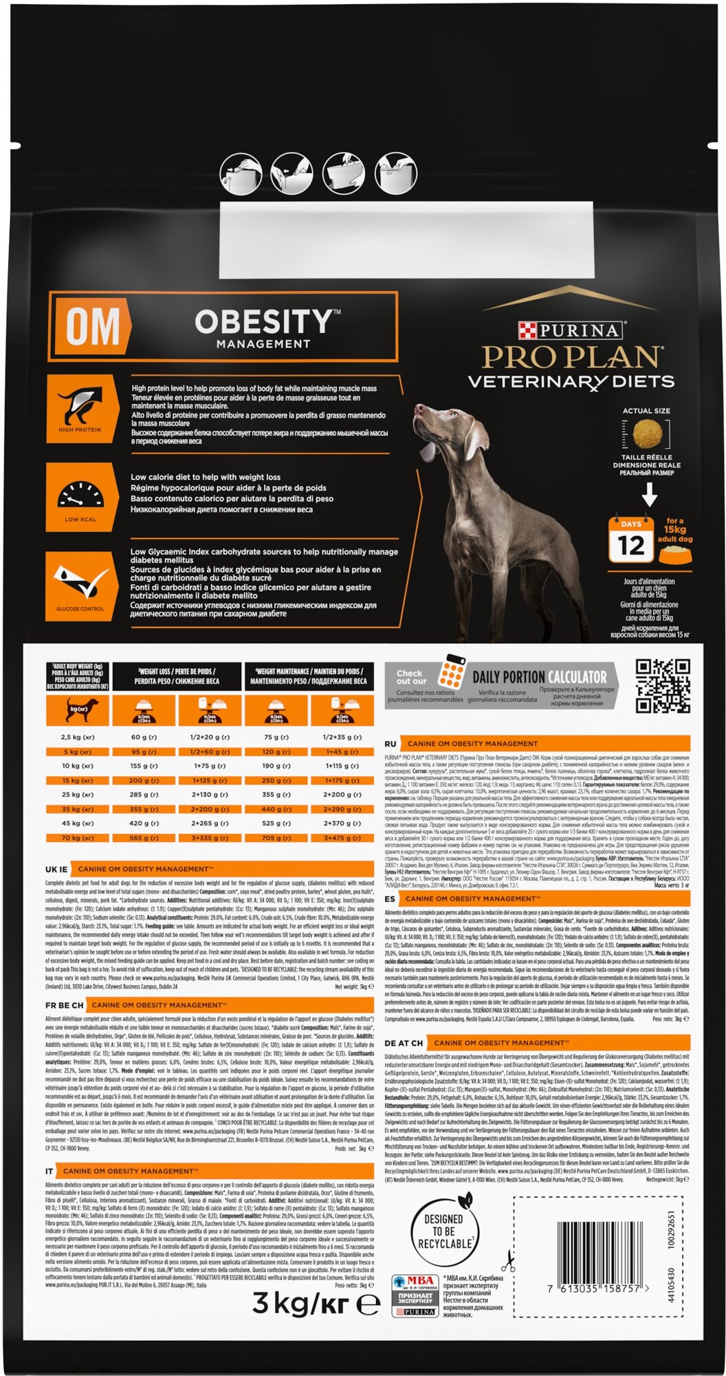 Pro Plan Veterinary Diets OM Obesity Management корм для собак при ожирении Диетический, 3 кг.