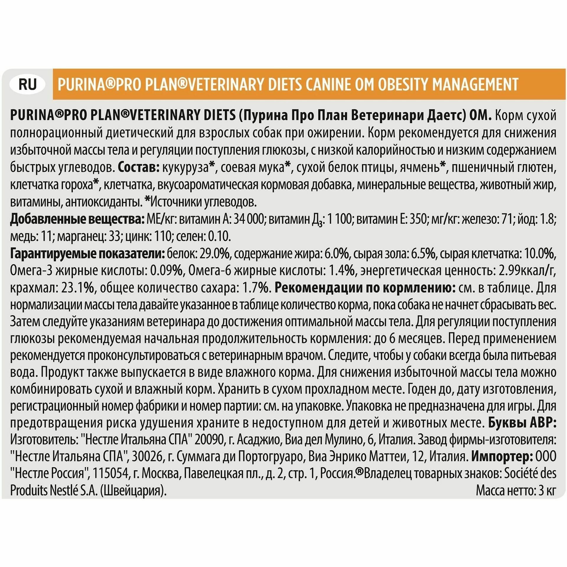 Purina (вет. корма) Сухой корм для собак при ожирении (Dietts OM) - 122744071238260612483425 | Veterinary Diets OM 3 кг 11640