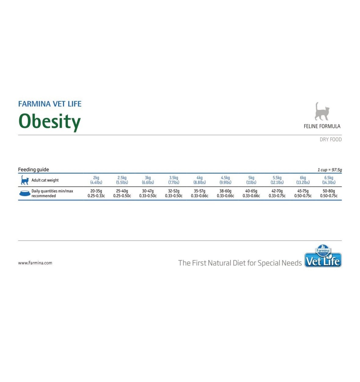Корм для кошек Farmina Vet Life Obesity 2 кг для снижения избыточной массы тела