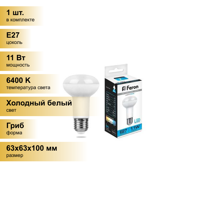 Лампа светодиодная LED зеркальная 11вт Е27 R63 дневной | код 25512 | FERON (1 шт.)