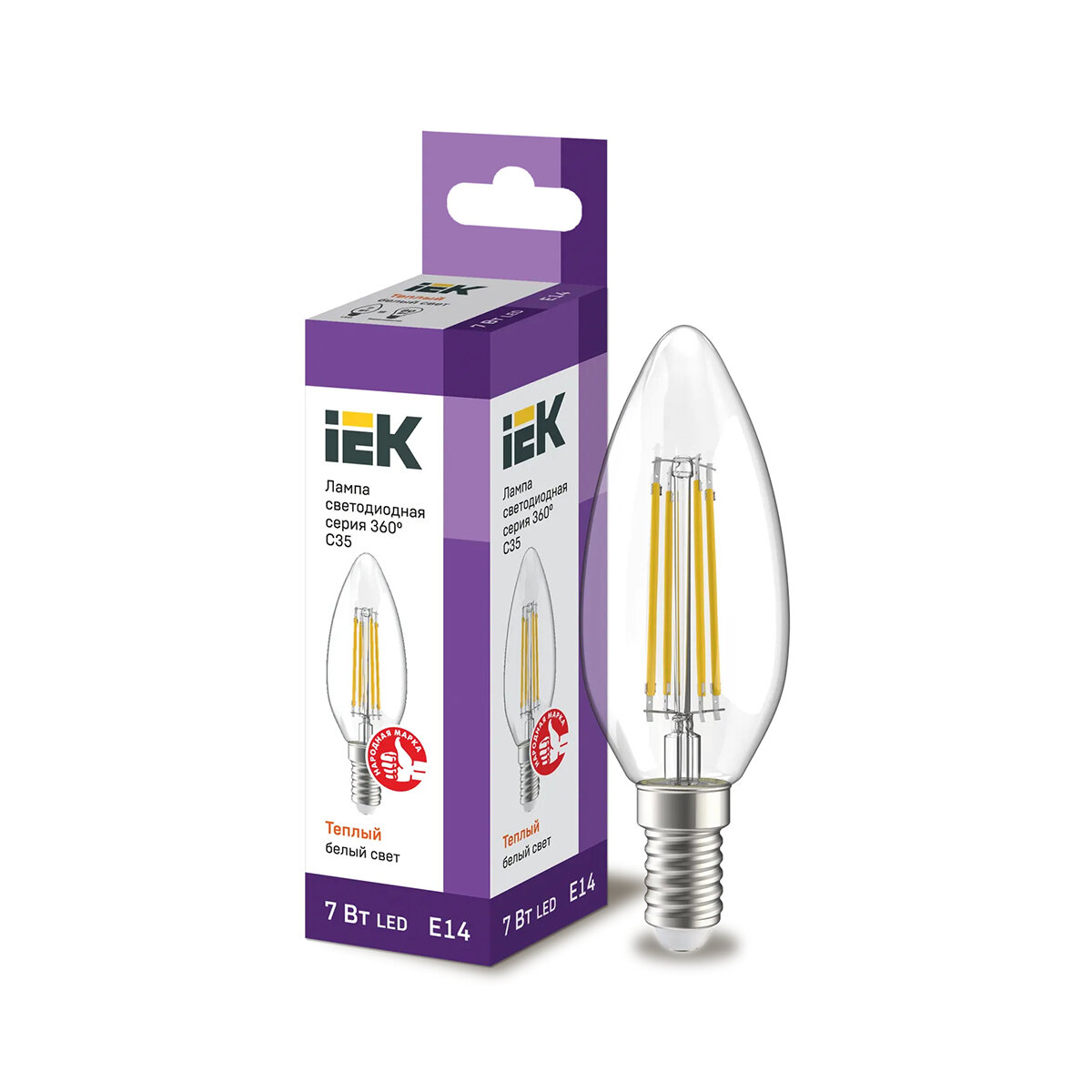 IEK Лампа светодиодная LED Свеча, серия 360°, E14, C35, 7 Вт, 3000 K, теплый свет интересное: