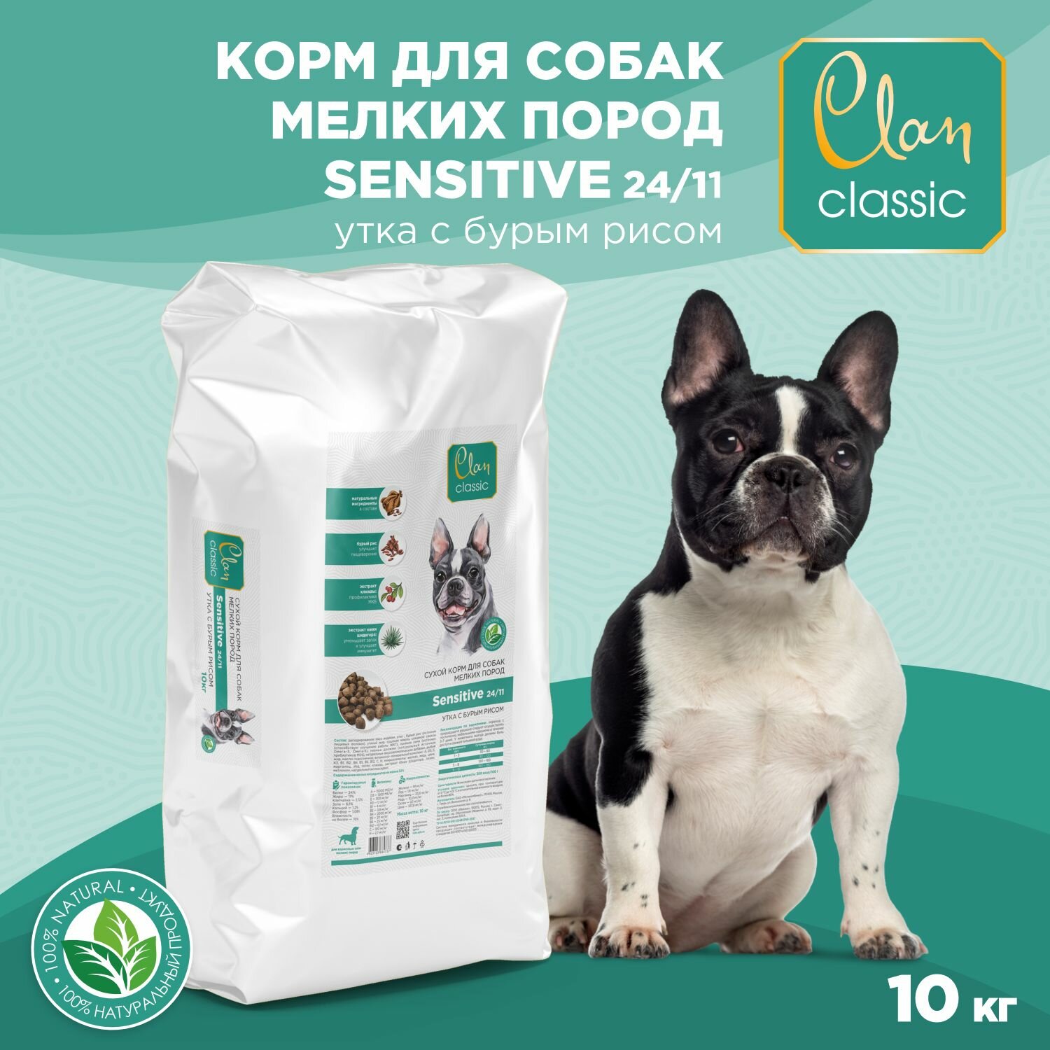 CLAN CLASSIC Sensitive-24/11 Сухой корм для собак мелких пород с чувствительным пищеварением 10 кг с уткой и бурым рисом