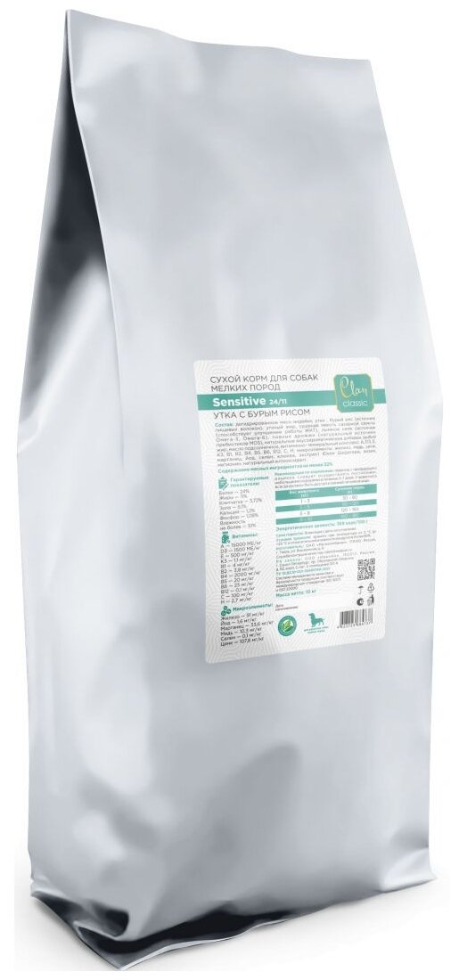 Clan Classic Sensitive 24/11 Сухой корм для собак мелких пород (утка с бурым рисом), 10 кг