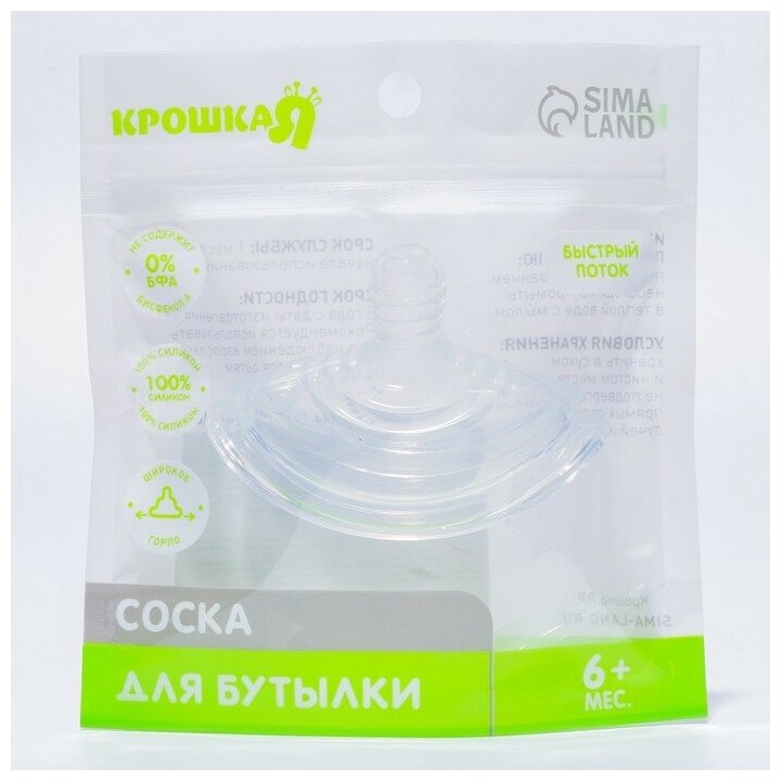 Соски Крошка Я Соска силиконовая, антиколиковая на бутылочку, +6мес., широкое горло, Ø60мм, для густой пищи