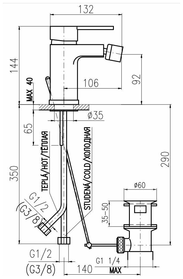 RAV Slezаk ZA045.5K ZAMBEZI Смеситель для биде с донным клапаном металл, хром