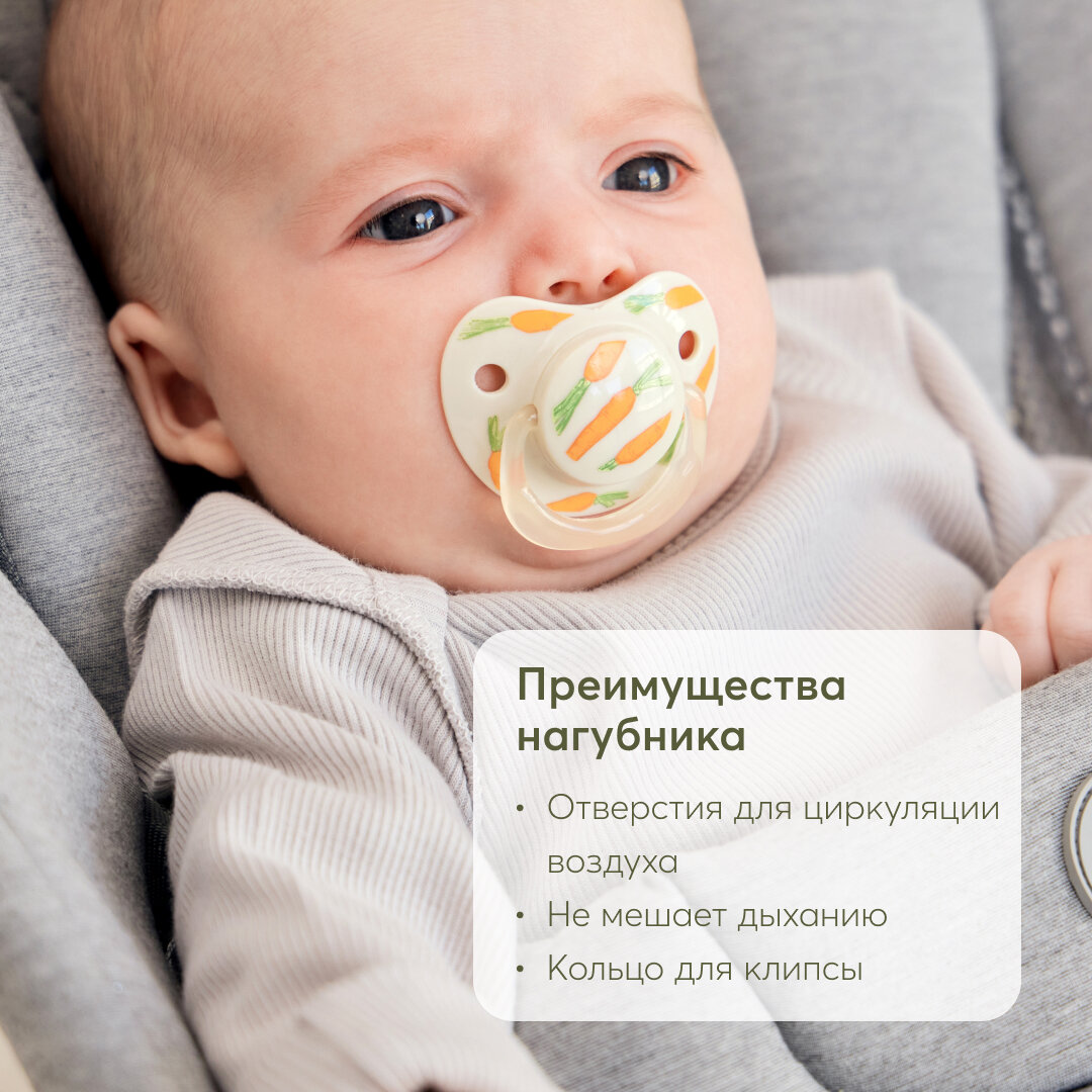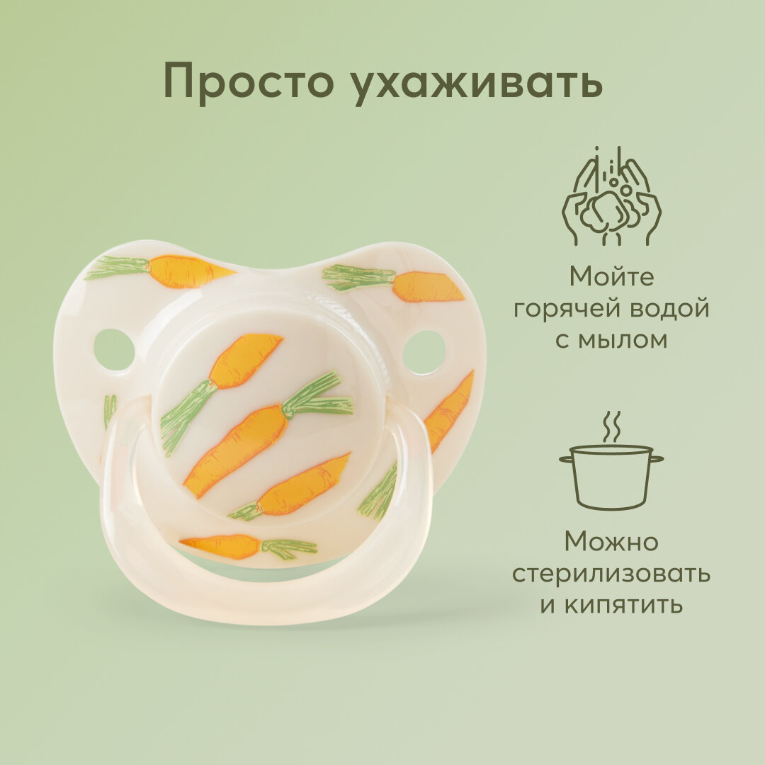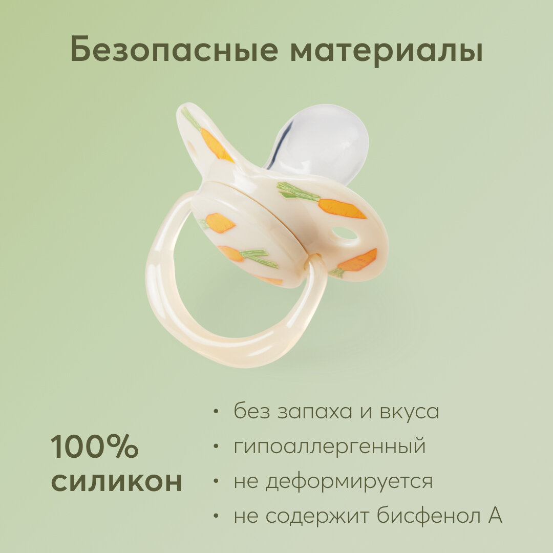 Сохранить13008/1, Соска-пустышка 12-24м Happy Baby, силикон, капля с колпачком, бежевая с морковками интересное: