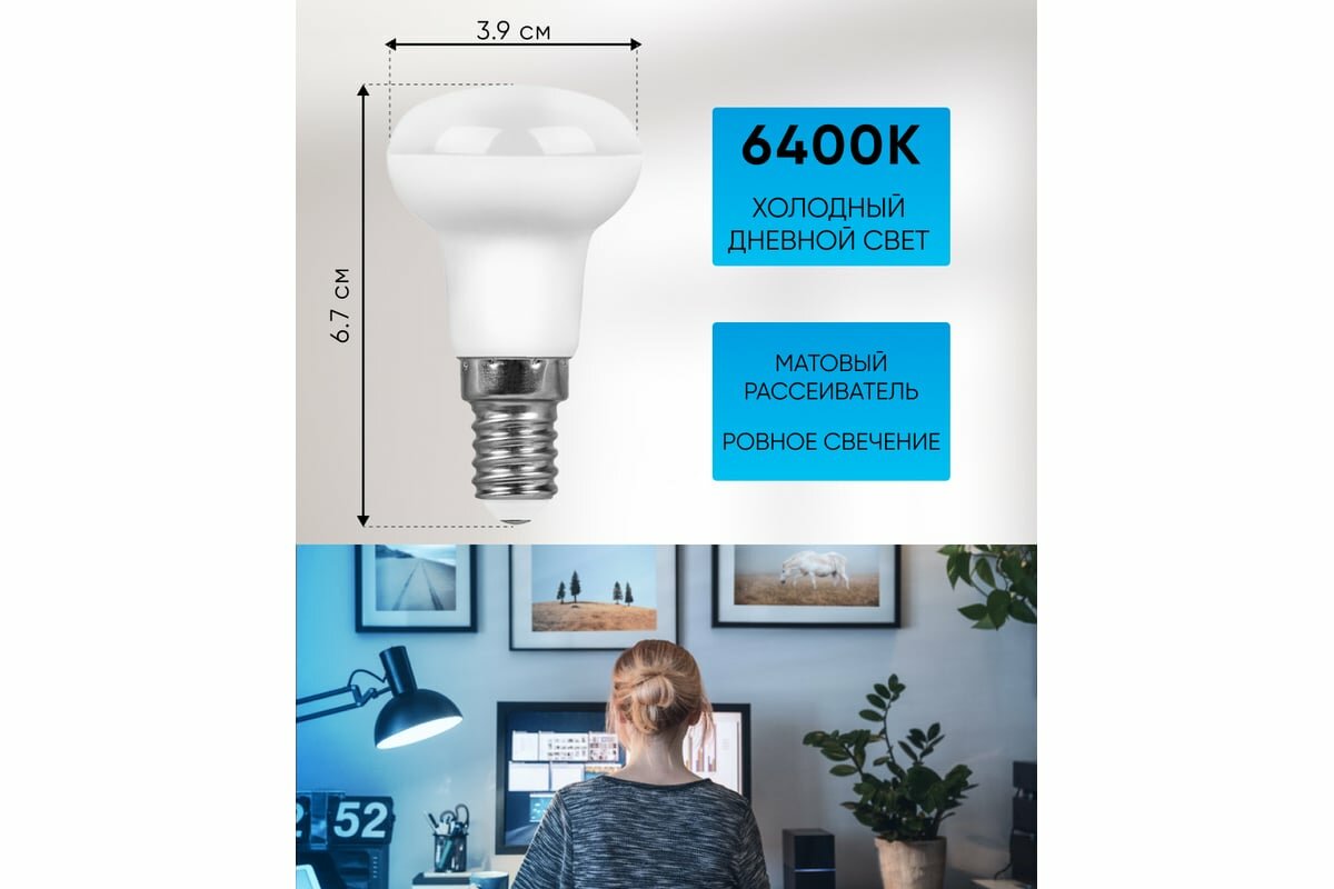 Лампа светодиодная, (5W) 230V E14 6400K R39, LB-439 5шт