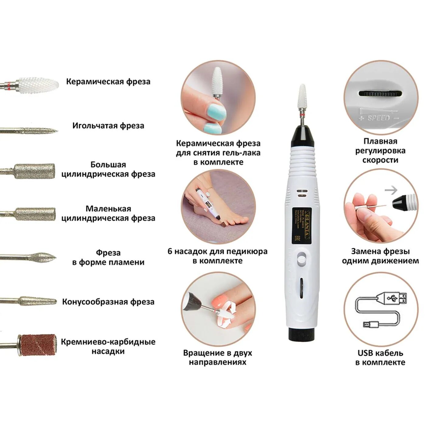 Маникюрно-педикюрный набор PL-MAN15 Master Nail Care, фреза для снятия гель-лака, реверс