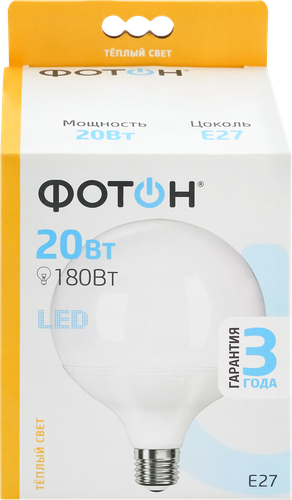Светодиодная лампа фотон LED G120 20W E27 3000K 23950 интересное: