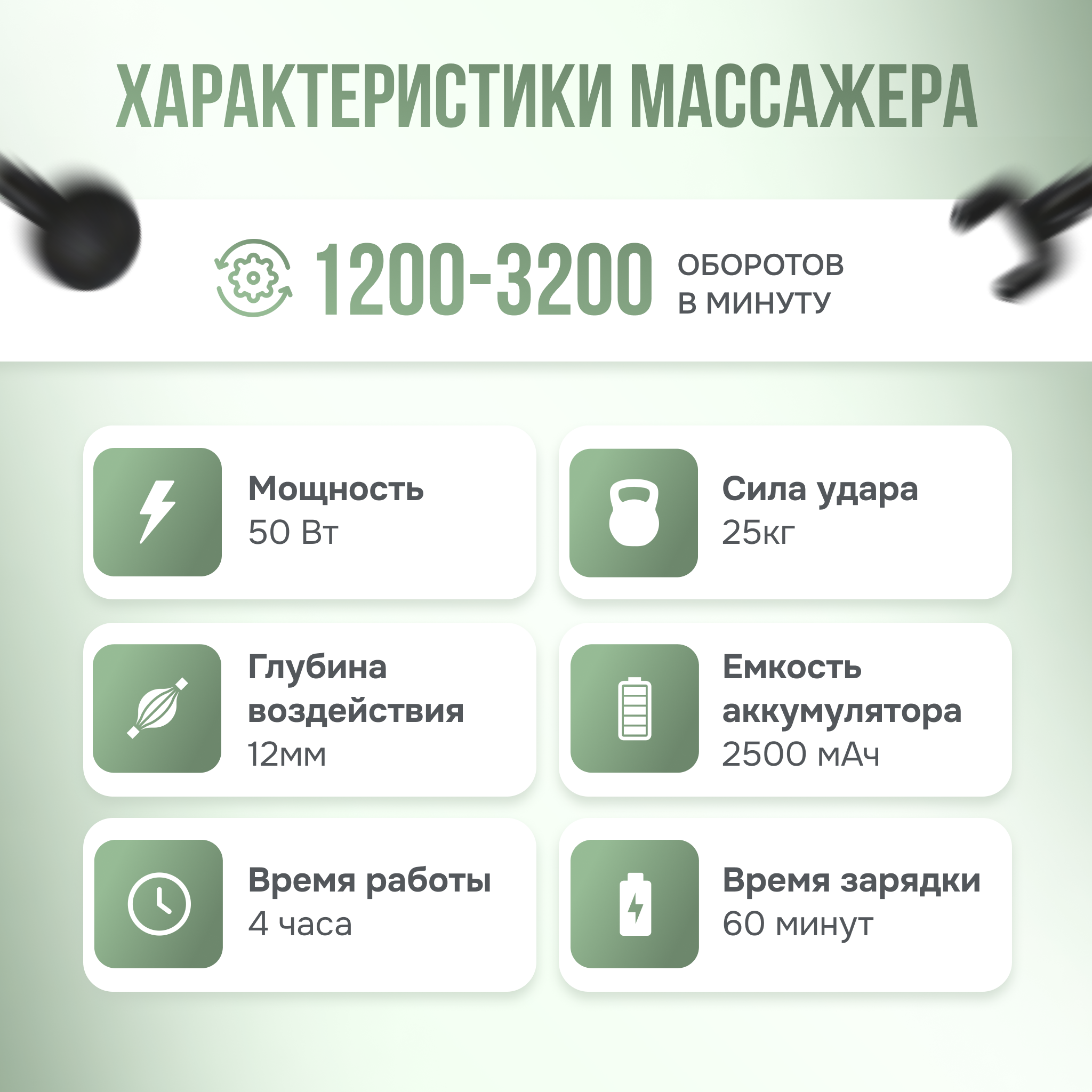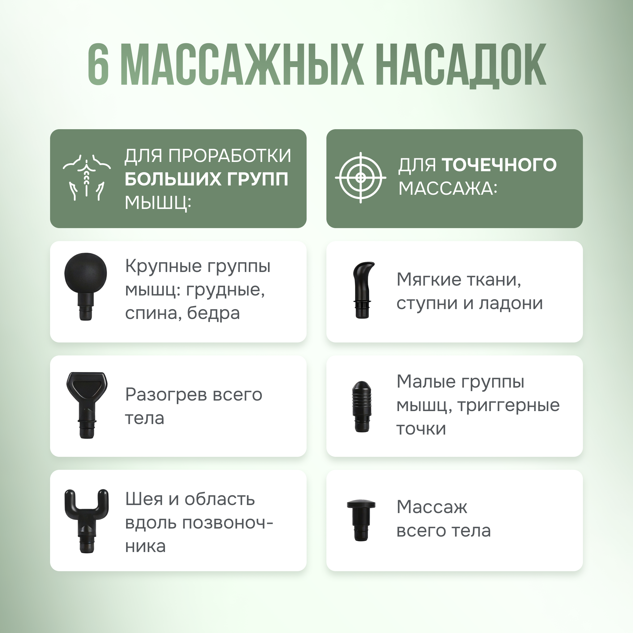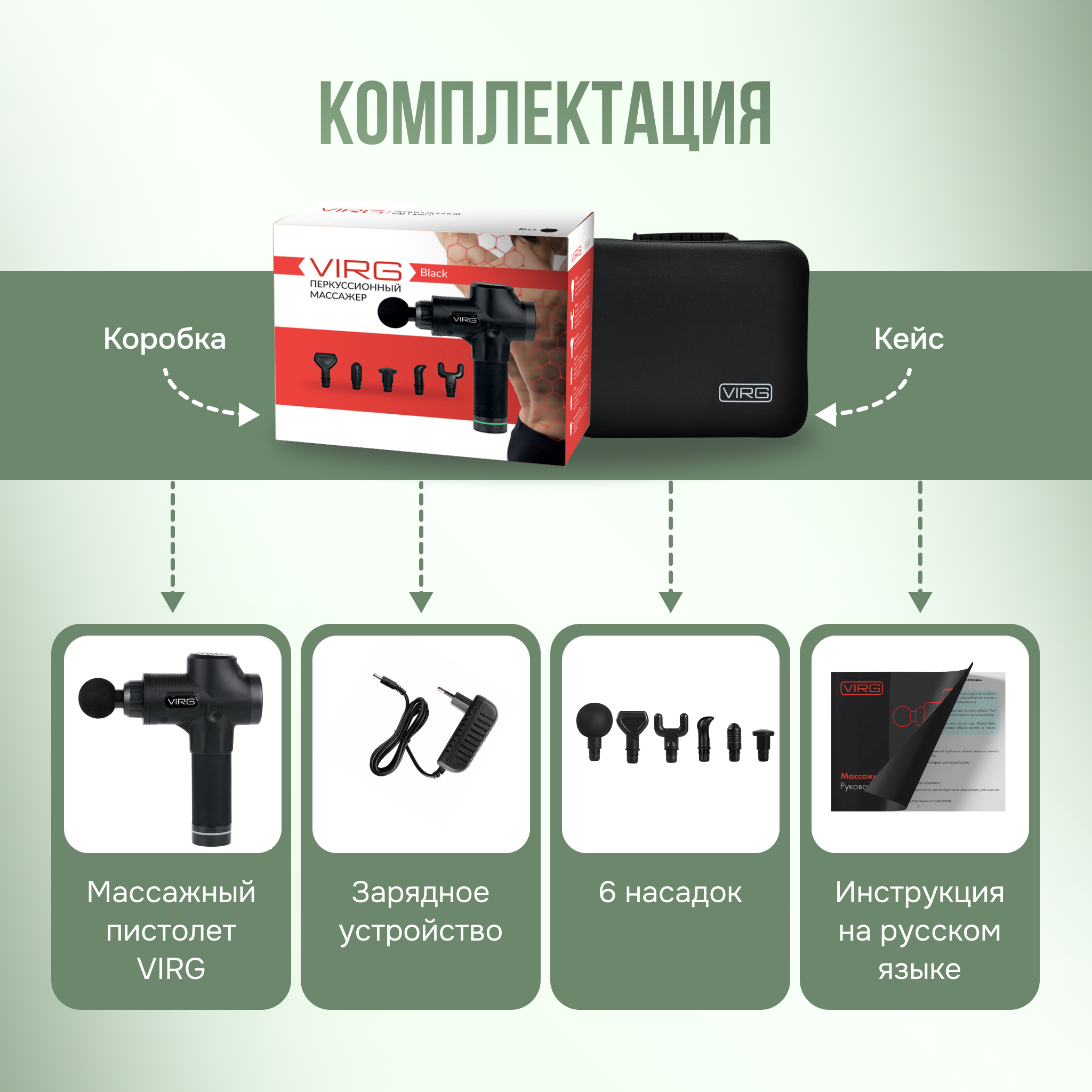 VIRG Перкуссионный массажный пистолет, электрический массажер для тела, спины, шеи, и ног, 6 насадок, вибромассажер Black New интересное: