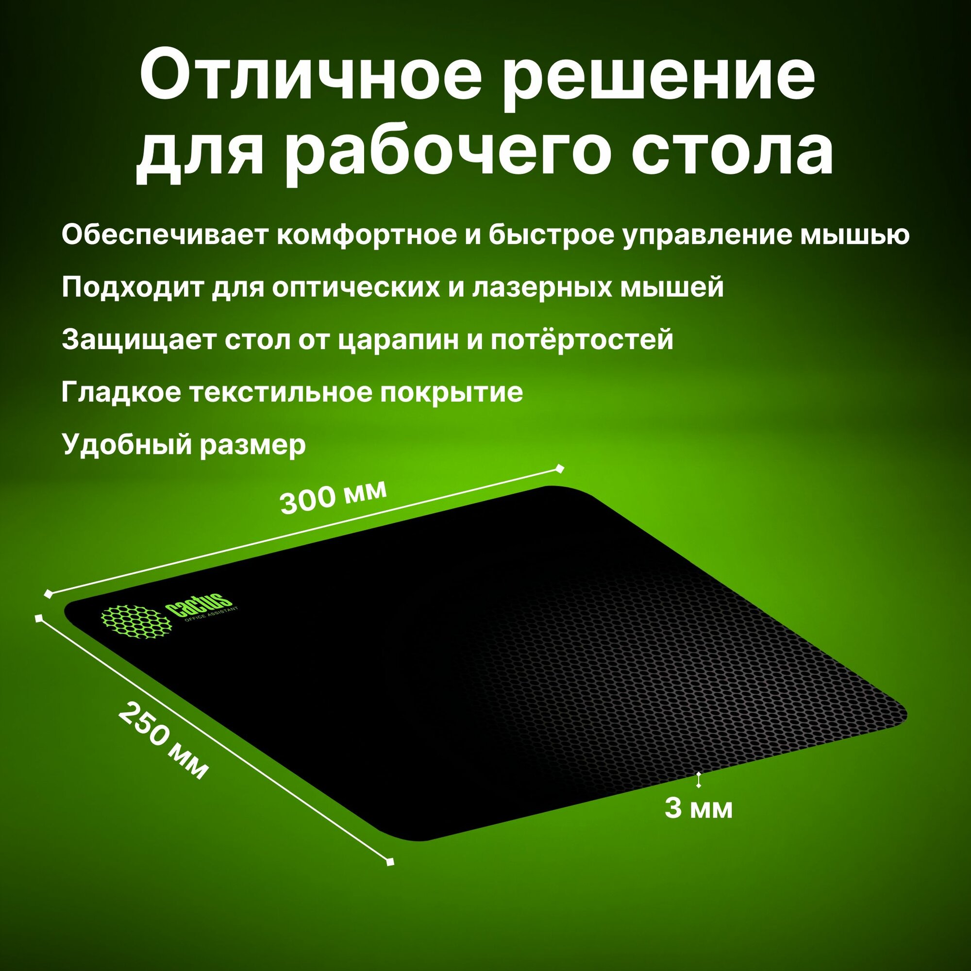 Коврик для мыши Cactus Black Mesh CS-MP-D02M 300x250x3 мм интересное: