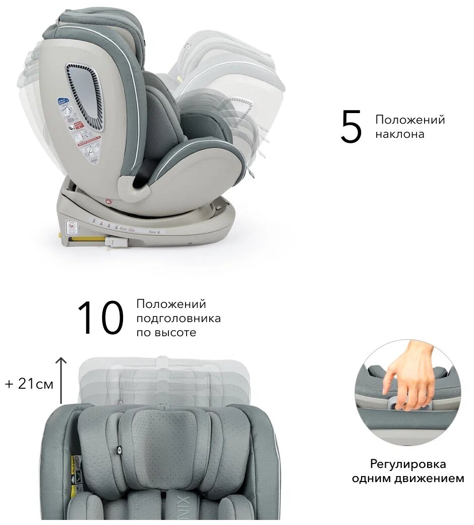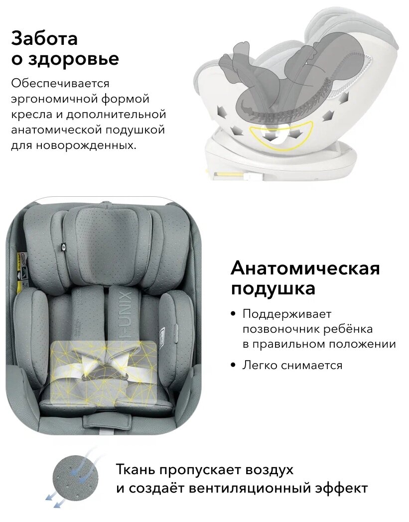 Автокресло Happy Baby детское I-Unix, крепление isofix, i-size, поворот на 360, 0-12 лет, группа 0+/1/2/3 (0-36 кг), экокожа, светло-серое