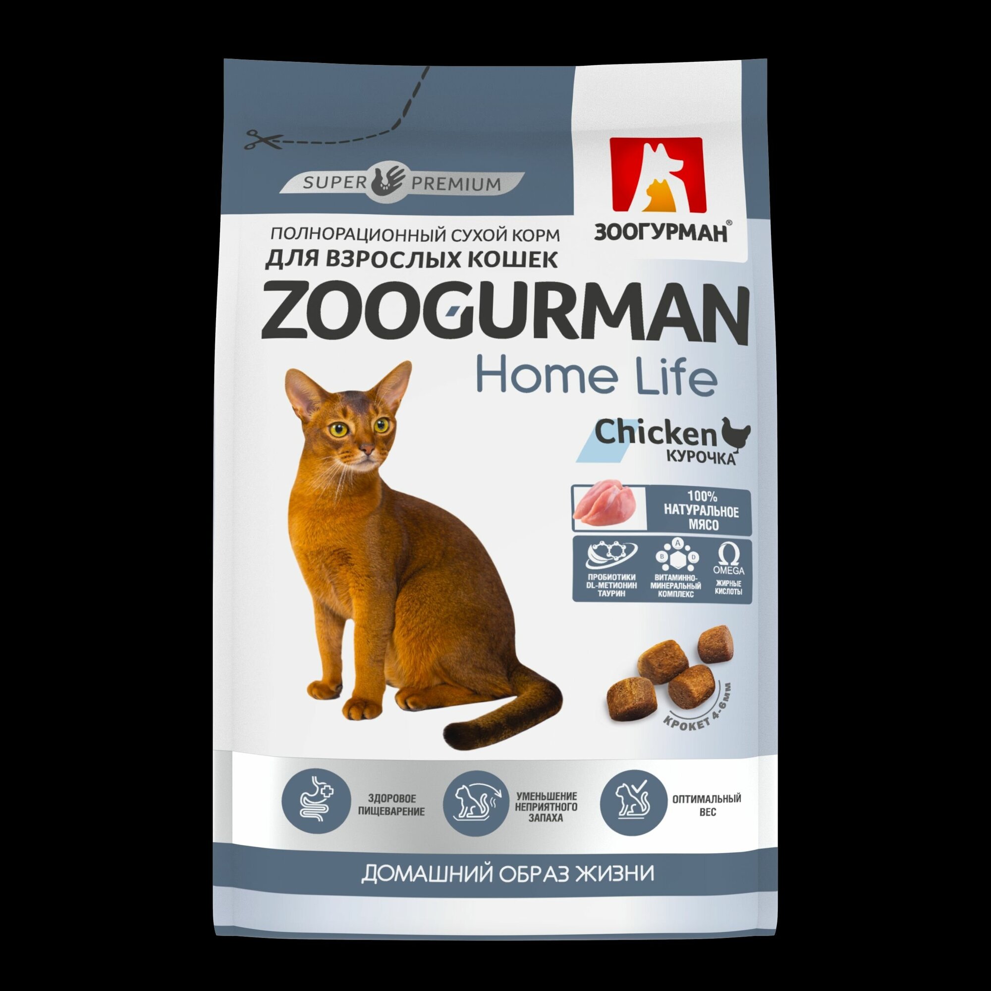 Zoogurman Home Life Домашняя жизнь, КурочкаChicken сухой корм для взрослых кошек, 1,5 кг