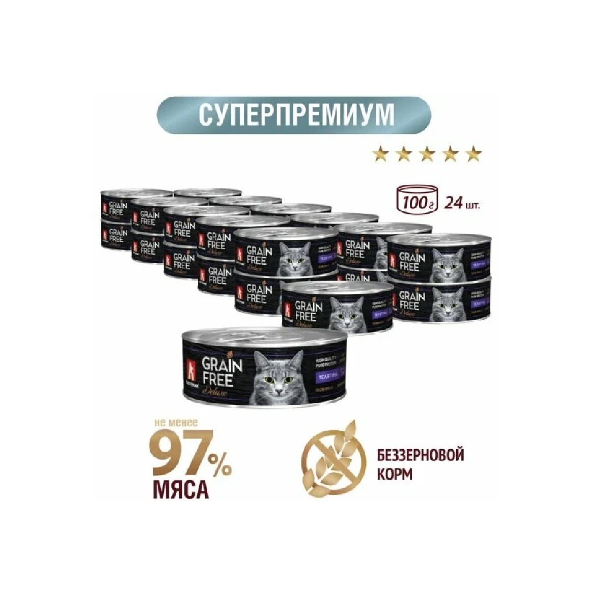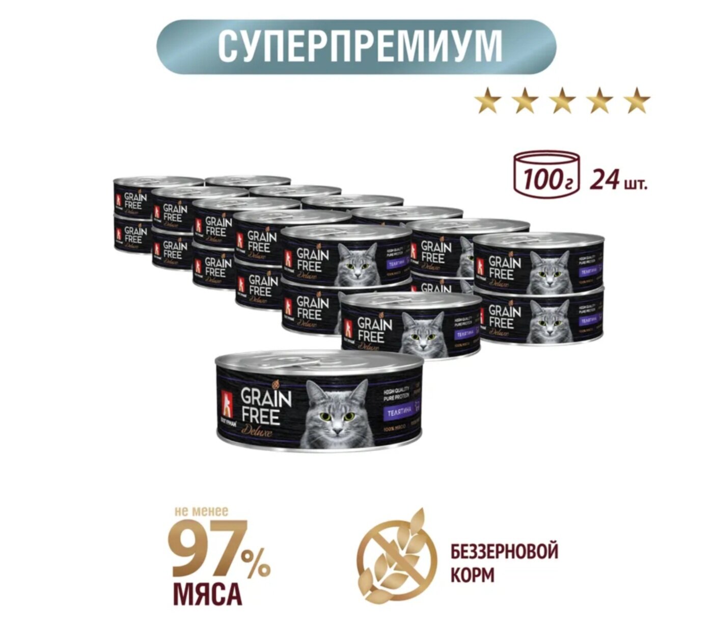 Зоогурман GRAIN FREE DELUXE беззерновые для взрослых кошек с телятиной банка 100 грNEW 100 гр х 6 шт