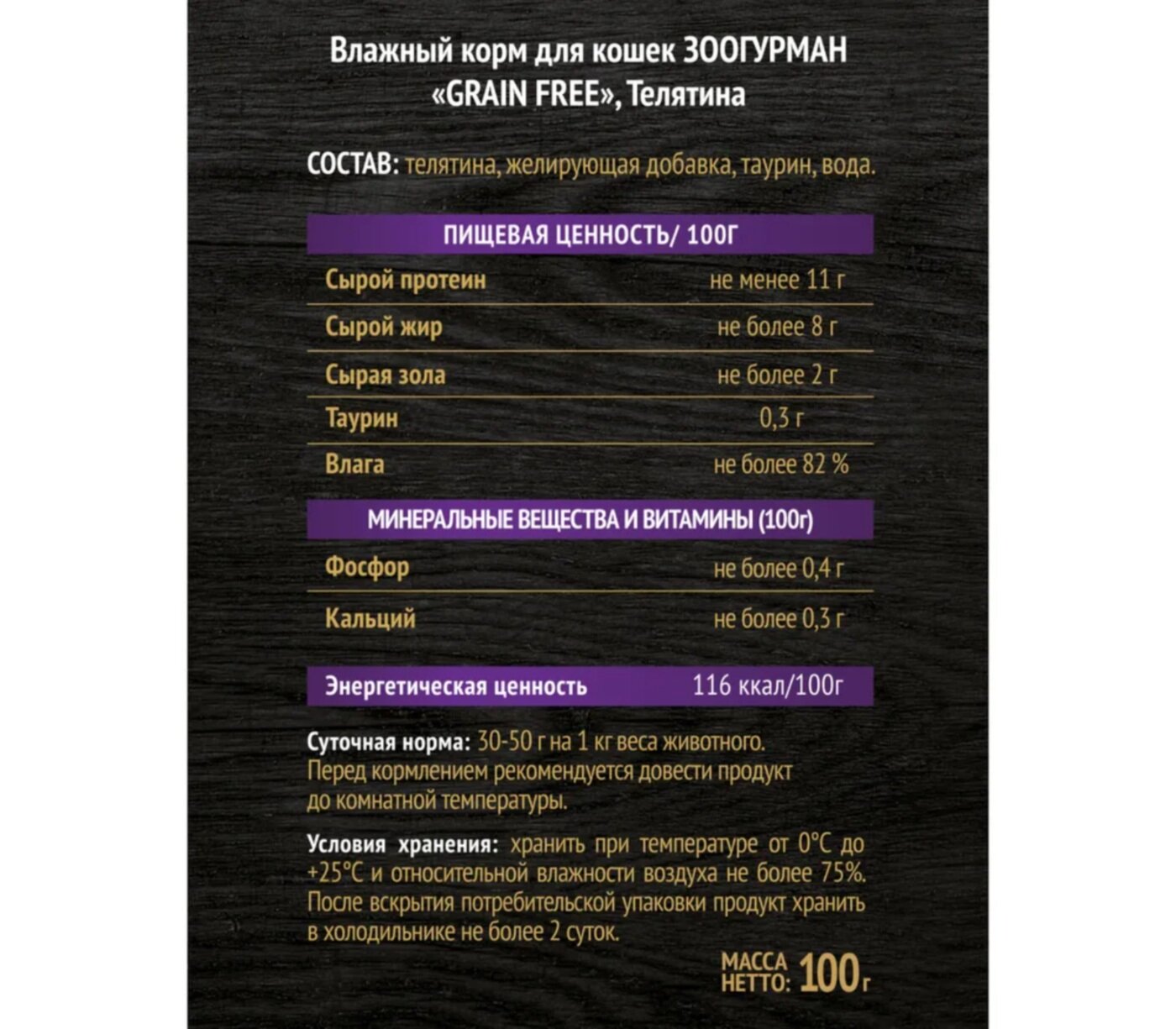 | Состав | телятина, желирующая добавка, таурин, вода |