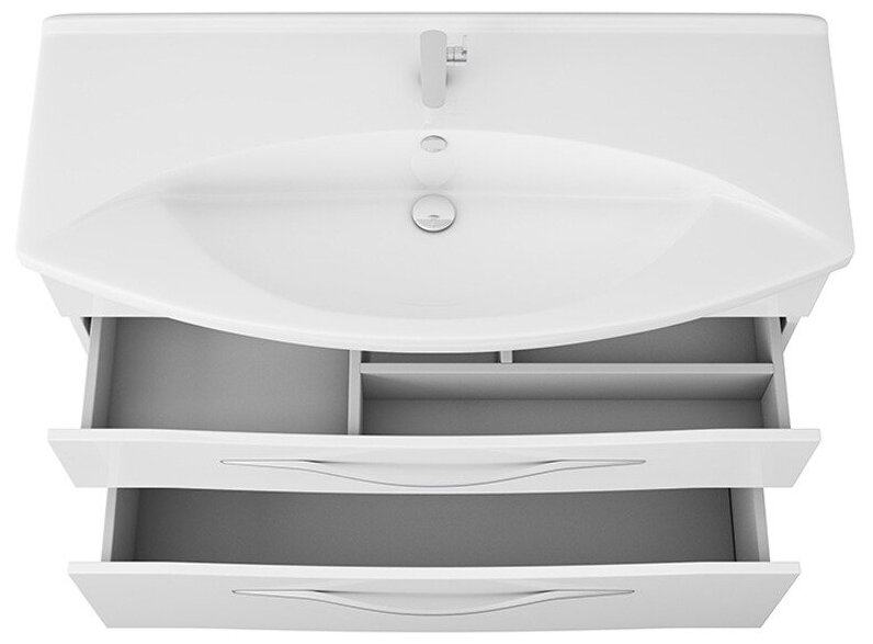 Комплект мебели OWL 1975 Vessla stor 105: тумба белый лак - 2 ящика + раковина Лагуна 105