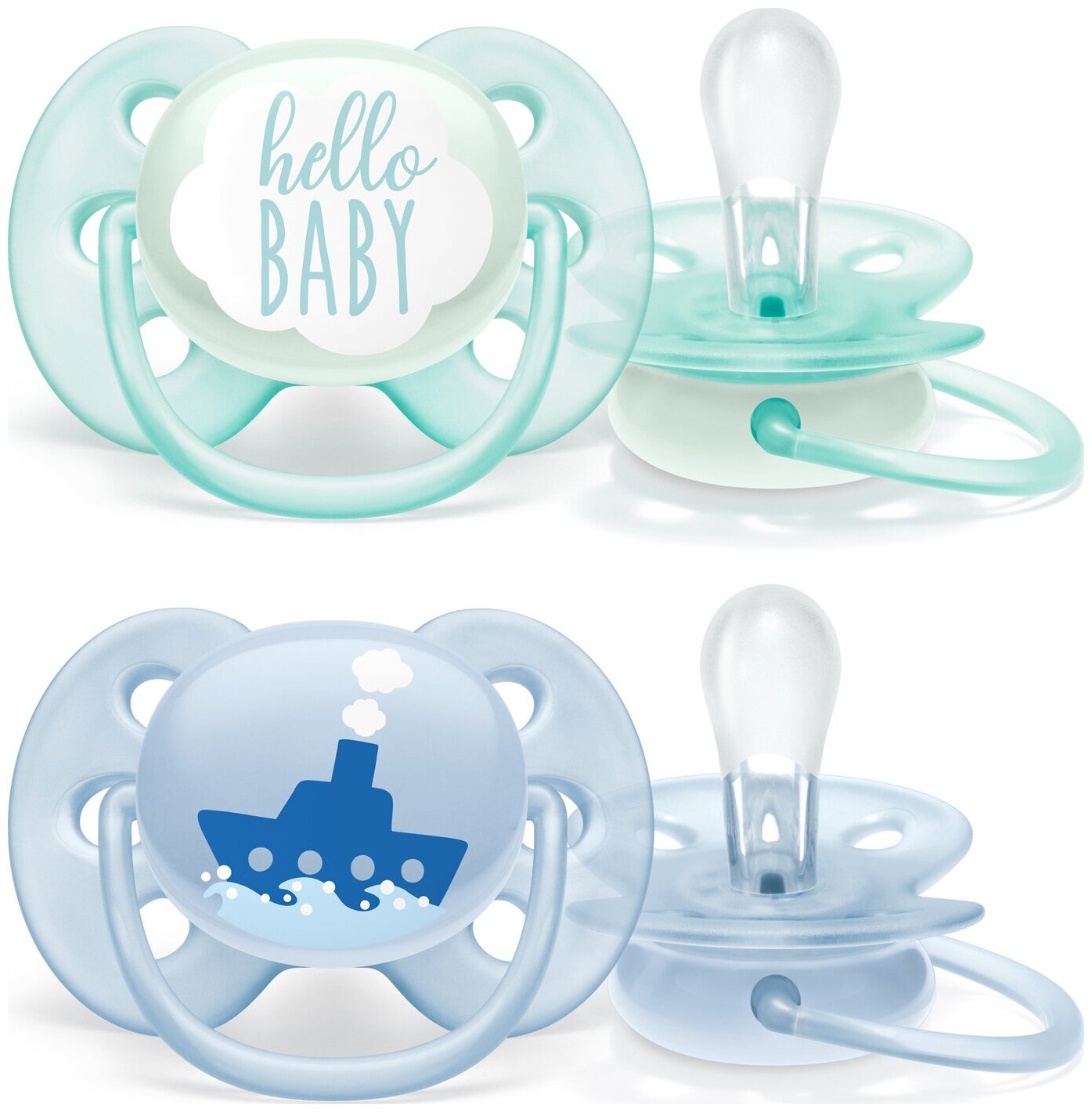 Детский товар Philips Пустышка ultra soft, Hello/Корабль, 0-6 мес., 2 шт, для мальчиков