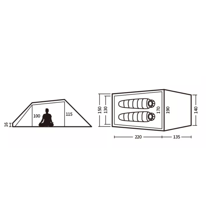 | Размеры внутренней палатки(ДxШ) | 220x170 cм |