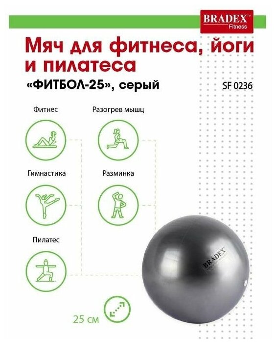 Мяч для фитнеса, йоги и пилатеса «ФИТБОЛ-25» Bradex SF 0822, салатовый интересное: