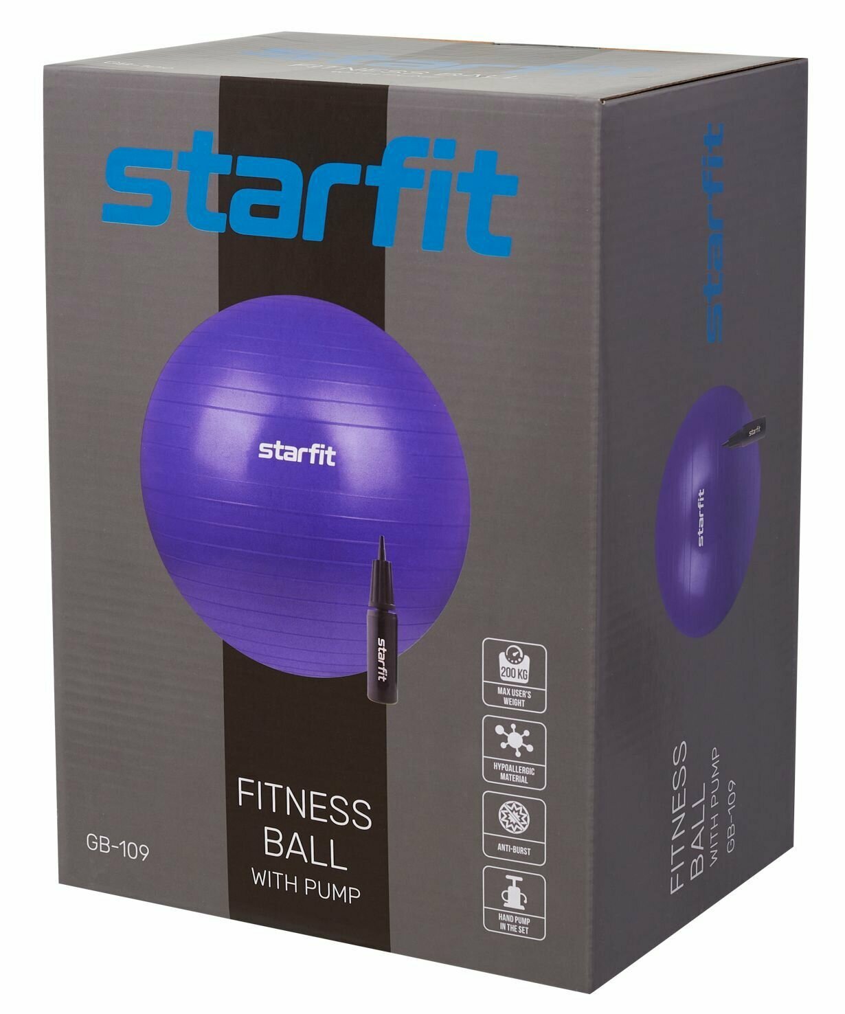 Фитбол Starfit Gb-109 антивзрыв, 1200 гр, с ручным насосом, фиолетовый, 75 см