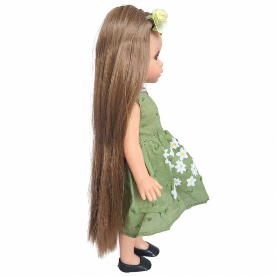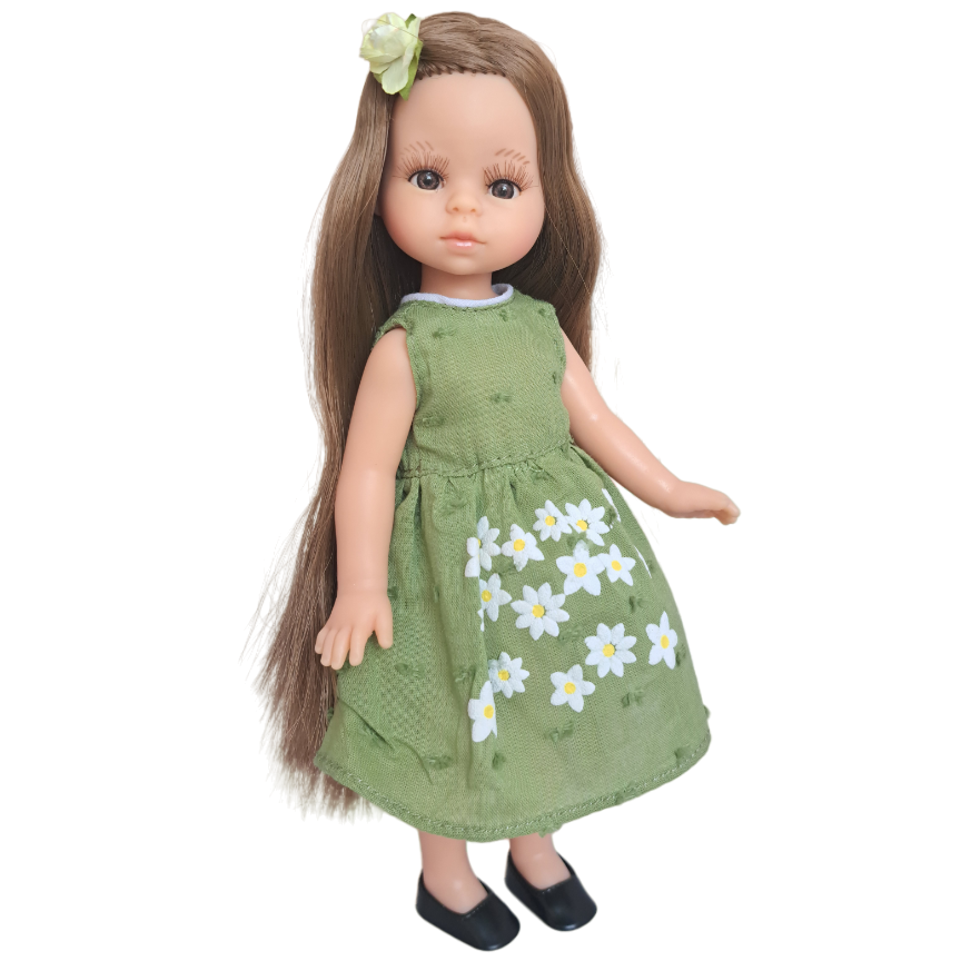 Кукла Paola Reina Эстела в зеленом платье с заколкой-цветком, 21 см