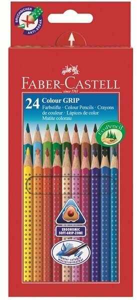 Карандаши цветные Faber-Castell "Grip", 24цв., трехгран., заточен., картон, европодвес