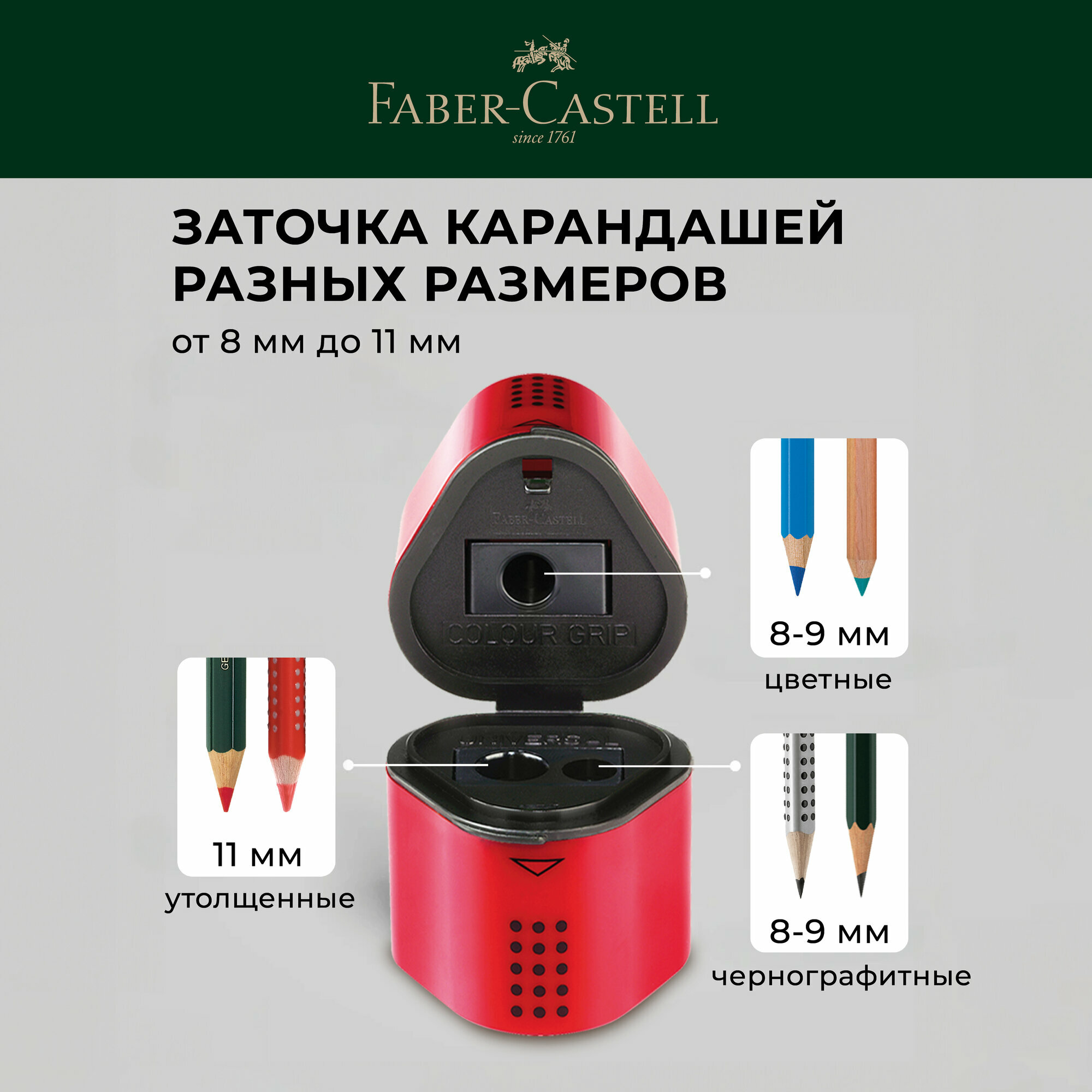 Точилка 3 отверстия с контейнером Faber-Castell TRIO Grip 2001 для стандартных и трёхгранных карандашей, цвет красный/синий
