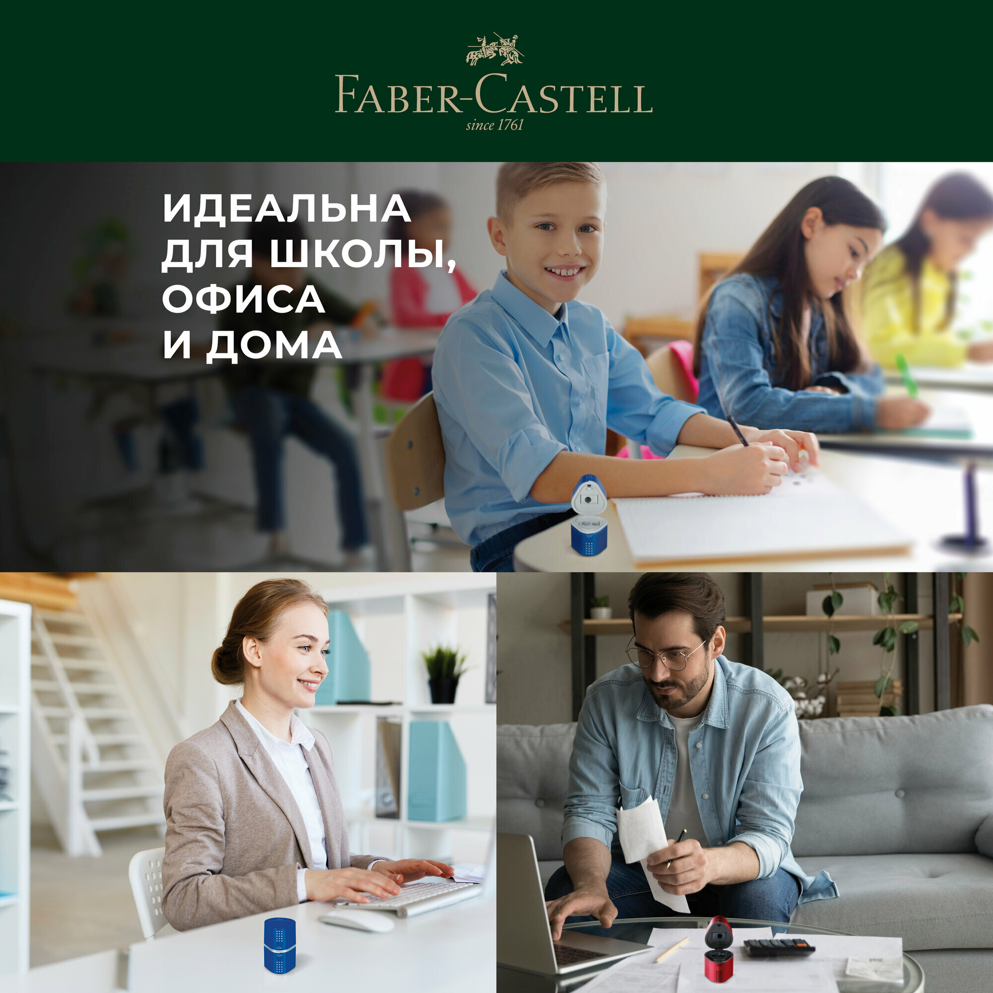 Точилка пластиковая Faber-Castell "Trio Grip 2001", 3 отверстия, 2 контейнера, красная/синяя
